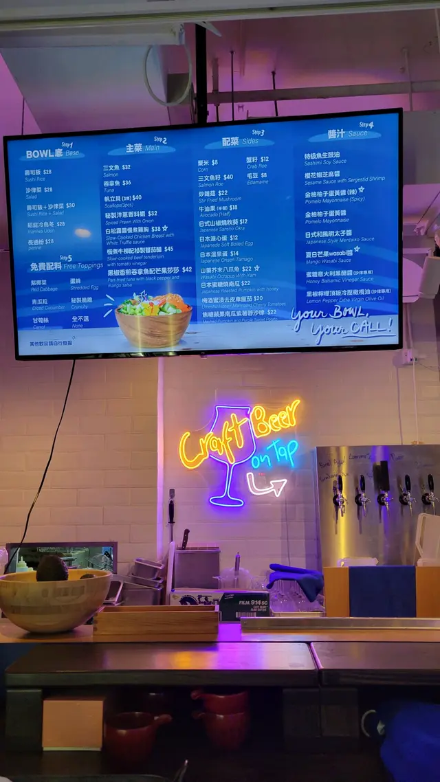 特色蓋飯有幾款,有生有熟,適合不吃魚生的人。我和朋友選了韓式辣三文魚配自家秘製泡菜和日式柚子牛油果刺身壽司飯,兩款皆有用醬汁醃漬過的切塊魚生,有三文魚、鯛魚等刺身,可謂是十分豐富。蓋飯足量大碗,包含溏心蛋、毛豆、蔥、芝麻、魚籽、牛油果、沙律菜、沙律醬、魚生和壽司飯......。各樣元素混合得十分完美,很有營養,低脂又健康,魚生醃漬得剛剛好,食材新鮮,壽司飯沾了醬汁及沙律醬後口感更豐富。