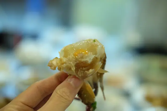 呢個三點蟹醃鮮真係無得頂,鹹甜有致當中蒜頭、辣椒與香料味均勻,一口吸吮軟腍的蟹肉,嗰種醃漬鮮味着實令人難以忘懷,其間仲隱隱散發出酒香令蟹肉嘅味道層次更深厚。而且唔會死咸,空口食完都唔覺口渴。