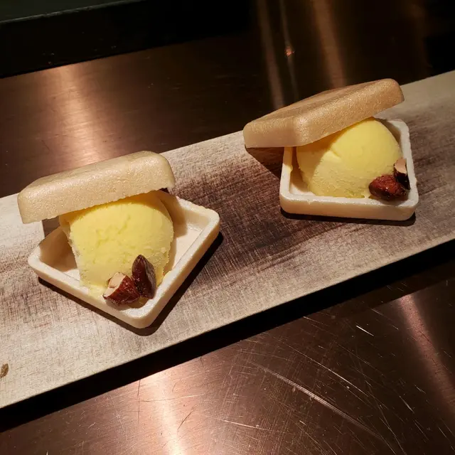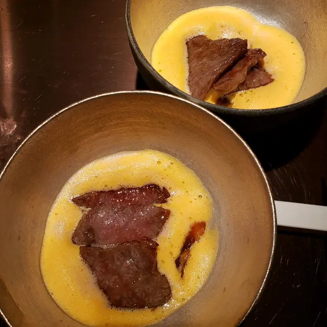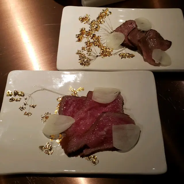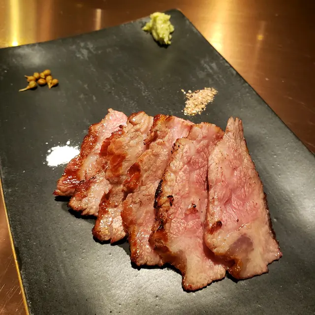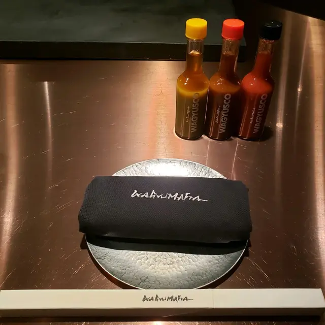 先喺凍櫃位置,淺嘗杯日本清酒及薄片煙燻製肉乾後,才正式進入用餐範圍,開始席前嘅廚師發版🥩🥓晚餐。