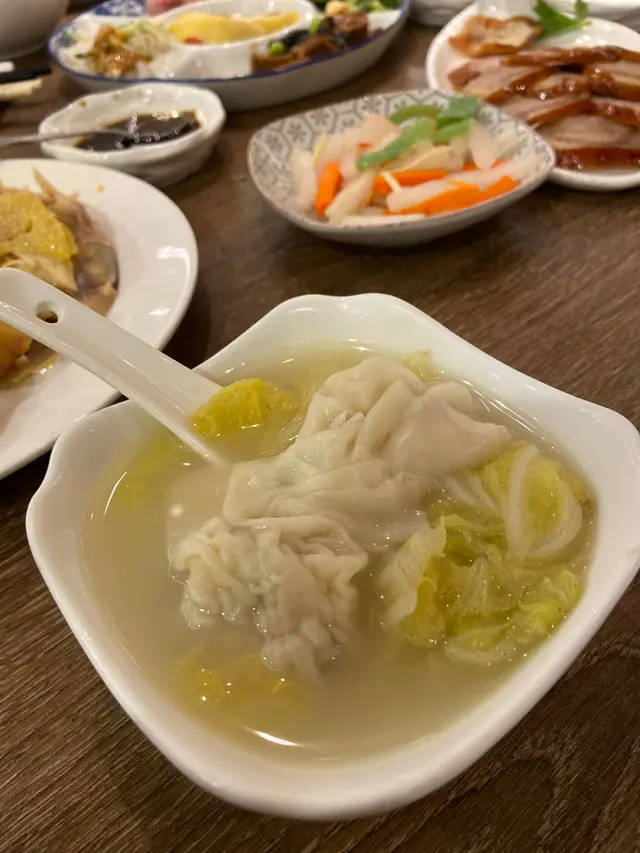 最後貪心叫多個砂鍋雲吞雞滋補下,服務員會幫你每個人分好一碗有菜有雲吞,半隻雞撈起切件另上。食完烤鴨飲碗湯解膩,有菜有肉有湯,岩晒我呢啲鐘意有d湯水嘅人!👍🏻