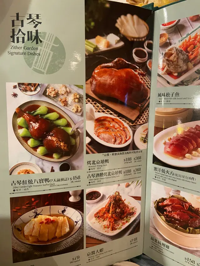 主菜上場啦!我地今次專登嗌左古琴酒糟烤北京填鴨(半隻),一上菜服務員就細心教你點樣品嚐:首先放低6款醬料配菜,最特別嘅係佢會有一小碟烤鴨皮,特別叮囑我地事先品嚐,先點砂糖再點梅醬,又香又脆新鮮出爐嘅烤鴨皮,真係好邪惡啊😈半隻份量都多,唔好見佢個碟唔大,入面都疊左好多塊,3人食一定夠!最鍾意佢呢個配料有哈密瓜,爽口清甜特別解膩。酒糟烤鴨真係有濃濃酒香,亦唔會蓋過烤鴨香味,食悶左一般北京烤鴨可以試下呢個特色煮法!特別一提佢個麵皮好細心咁每一層都用牛油紙分隔,好方便拿取!👍🏻