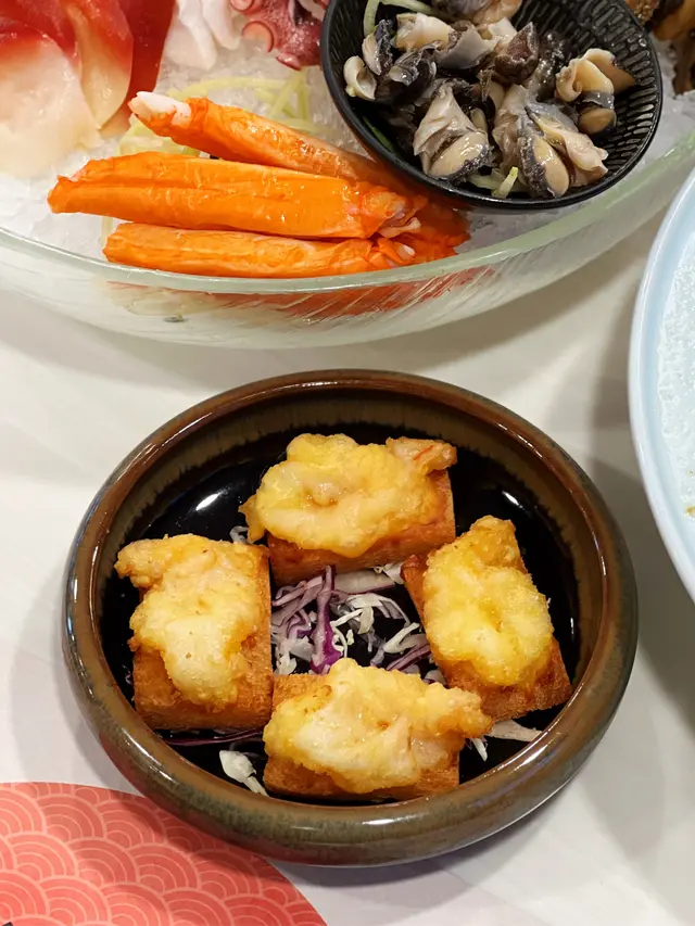包括:三文魚、甜蝦、八爪魚、北寄貝、蟹柳等,當中最喜歡冰鎮鮑魚,爽口不死實,肉質彈牙。