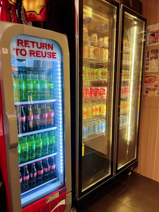 多款罐裝飲料,更有玻璃樽裝汽水,自製檸檬薏米水及冷泡菜茶清熱又解膩。