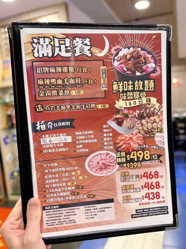 這間位於尖沙咀的火鍋店,主打180分鐘任飲任食,有多款套餐豐儉由人,店內寬敞舒適,設有獨立房間更有私隱度,適合多人聚會。跟家人選擇最高級套餐,任食所有生猛海鮮及高質牛肉。