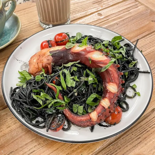 🔹慢煮原條八爪魚墨汁香辣意粉🍝