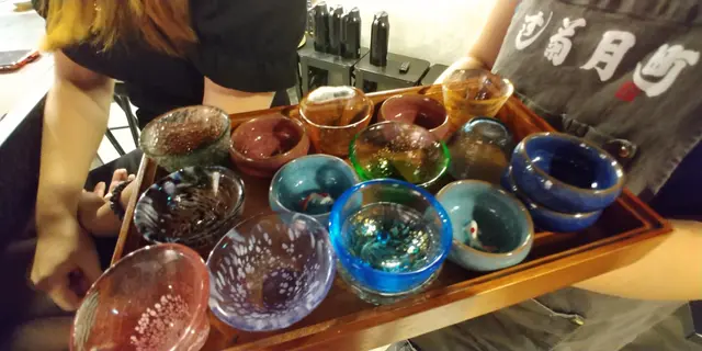 在上清酒前, 可以挑選自己喜愛的清酒杯.