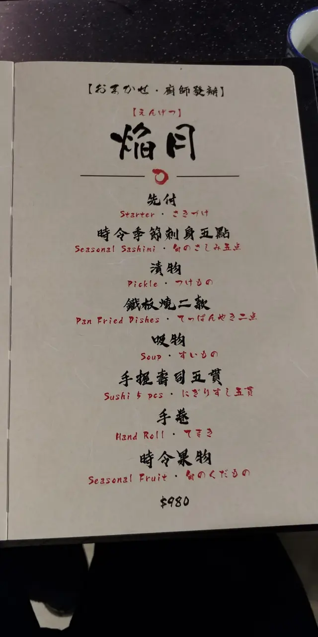 訂枱時已訂了這份$980的Omakase, 以晚飯Omakase來說只是外面的一半價錢.