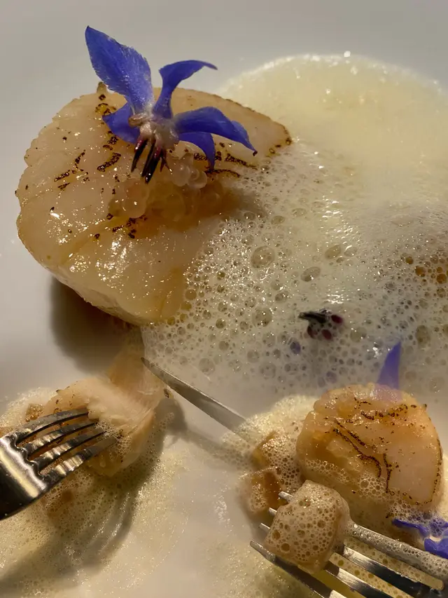第四道 – Hokkaido Scallop, Daikon, Oyster Leaf北海道帶子🫲🏻