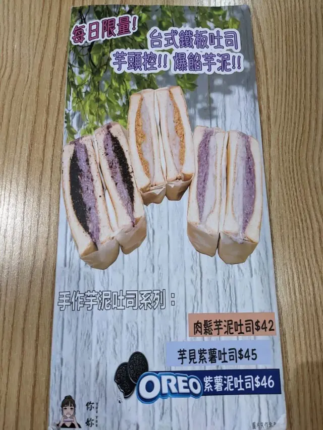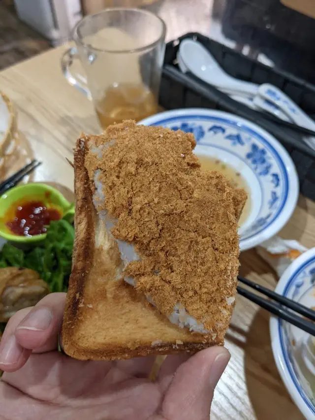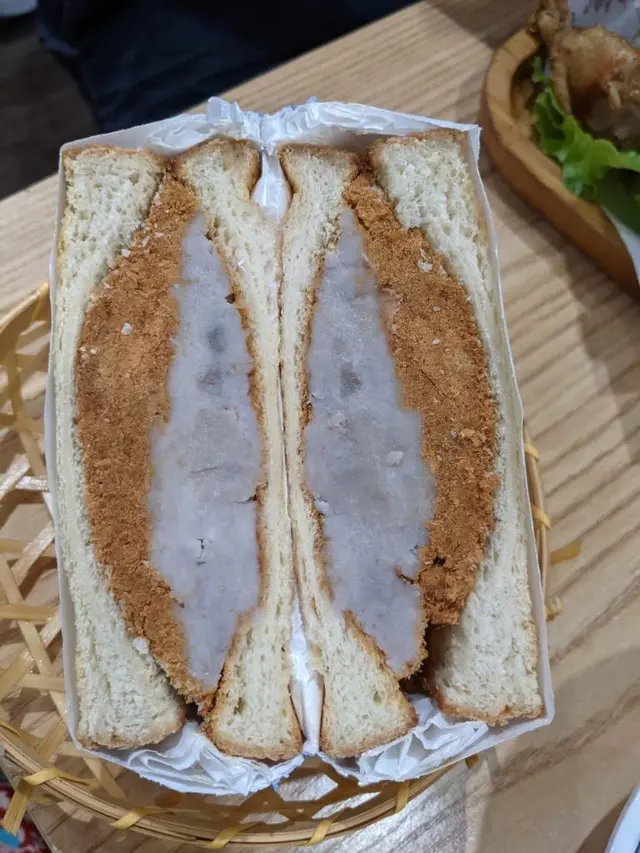 最後當然唔少得招牌物:芋泥吐司!呢個完全係飽肚之選😂好大份!打開睇到餡料充足,係佔滿成塊包架,絕對唔係得前面做個樣,芋頭迷必叫。芋泥有粒粒咬口,一定唔係用粉沖成去扮,之前聽講係人手壓成,而家食完我真係信!加埋肉鬆補足味道,係一個令人滿足嘅TEA。