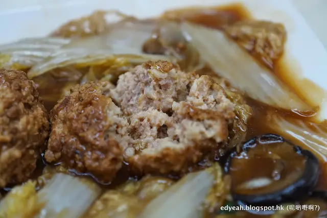 不會一夾就散,卻放於口中有化開的跡象,神奇超卓頂級。但得兩粒唔夠喉……(雖然個餐已經好夠份量的說)。弄開肉丸,能見到細緻刀功下的肉碎,加點蠔油底汁,「小二,一碗飯點夠?」
