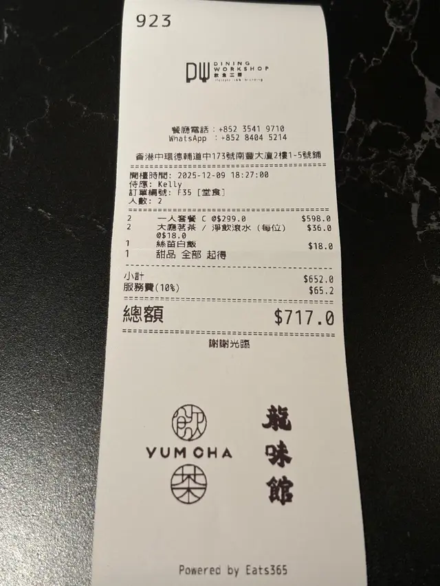 原價八百多元,推廣價僅$598(兩位用),性價比相當高。雖然需另加茶芥與服務費,但整體菜式豐富、味道出色,無論是情侶約會或好友共聚,都是值得推薦的套餐選擇。