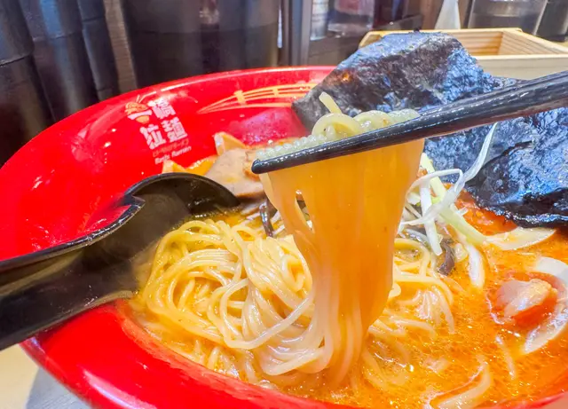 相對之下,這湯底就比較清淡一點,不是濃厚型的豚骨湯。