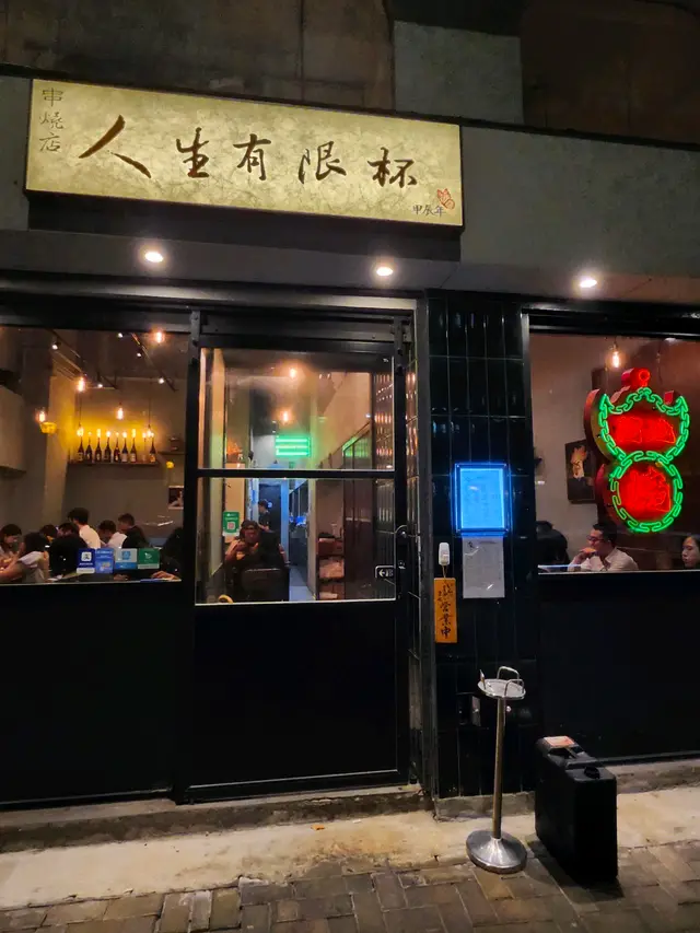 估唔到係中環食串燒 都有街坊價😹 最平$10有交易! 平日夜晚都滿座好旺場🔥 環境簡約明亮 居酒屋格局令人心情輕鬆 「人生有限杯」好有意境 人生有限 就是要享受當下