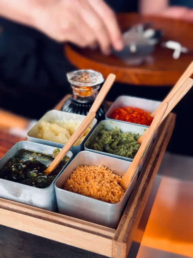 ❀第一件: 第一啖建議原汁原味,直接大啖咬落去,感受漢堡扒係口腔爆發出嚟嘅肉汁同炭燒香氣; 之後可以係各款調味料挑選最適合自己嘅味道,個人最鐘意豆瓣醬及青唐辛子鹽漬檸檬,前者惹味後者清新,同再將漢堡扒放係白飯上面,吸收肉汁,送飯一流。