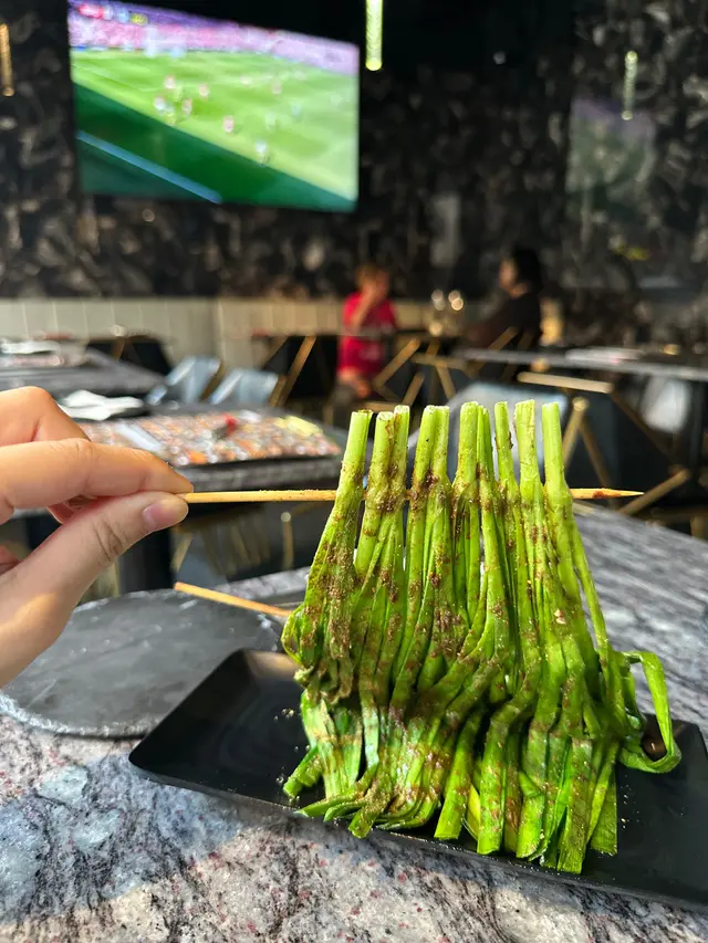 15.韭菜燒(串):韭菜烤到邊邊焦脆,內裡仍有汁水,因為。
