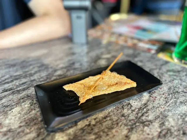 6.招牌紙鶴雞皮(串):雞皮烤到酥脆,油脂化在嘴裡,。