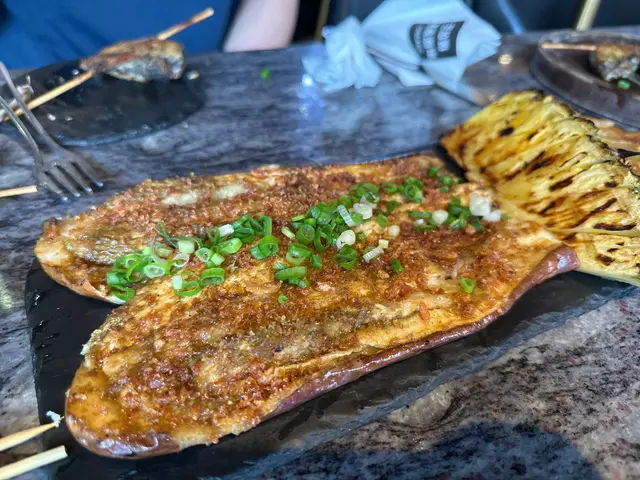 14.招牌茄子燒(條):茄子烤軟,吸滿蒜香醬汁,鹹香帶蒜辣。