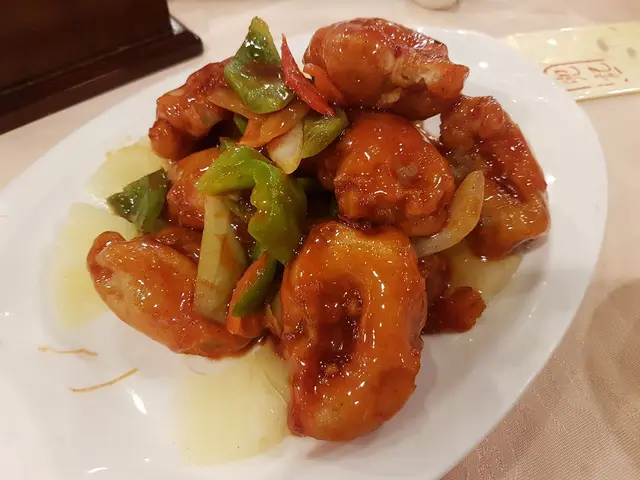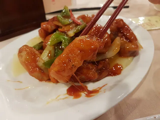 明知叫了那麼多東西二人實難吃得下,老友都堅持要來一碟拔絲咕嚕肉。肉是半肥瘦的不嚡韌,只可惜的是裹面的脆漿太厚不能全然貼伏於肉面上;拔絲的效果是營造得出來的;醬汁也算是調得甜酸合度,稠度亦可以....