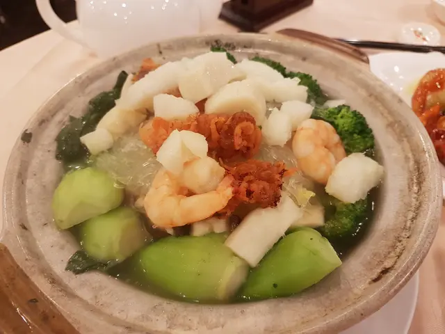 怎知一上桌,便看到在一眾菜蔬上堆滿斑肉、蝦、珊瑚蚌以及帶子,抵食又夠量足。西蘭花及小棠菜在嗦盡海鮮的鮮甜湯汁底下,甜味亦因而更突出了....