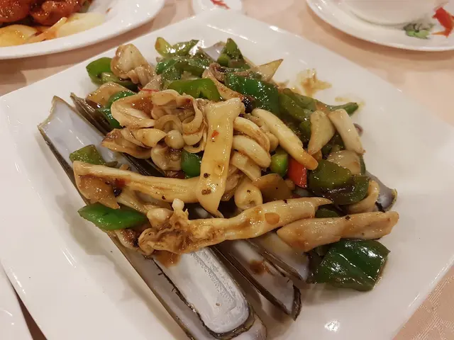 脆皮燒雞加上豉椒炒蟶子,是當晚抵食A餐之選擇。前者差不多有半隻之量,皮鬆化而脆香,肉亦帶點點鹽香蠻入味,用來送飯是不錯的;後者則出奇相當夠份量,蟶子肉一點都不柴韌且非常爽彈,水準是好得有點出乎意料。只是若然可以弄得有鑊氣一些,不那麼溫溫吞吞的話,那就更好了.....