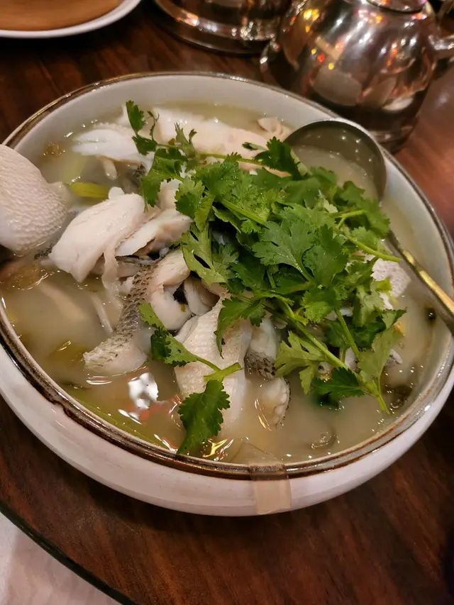 酸菜魚,呢個就係全晚難食既冠軍!!d魚肉又腥又有泥味,食到想嘔🤮
