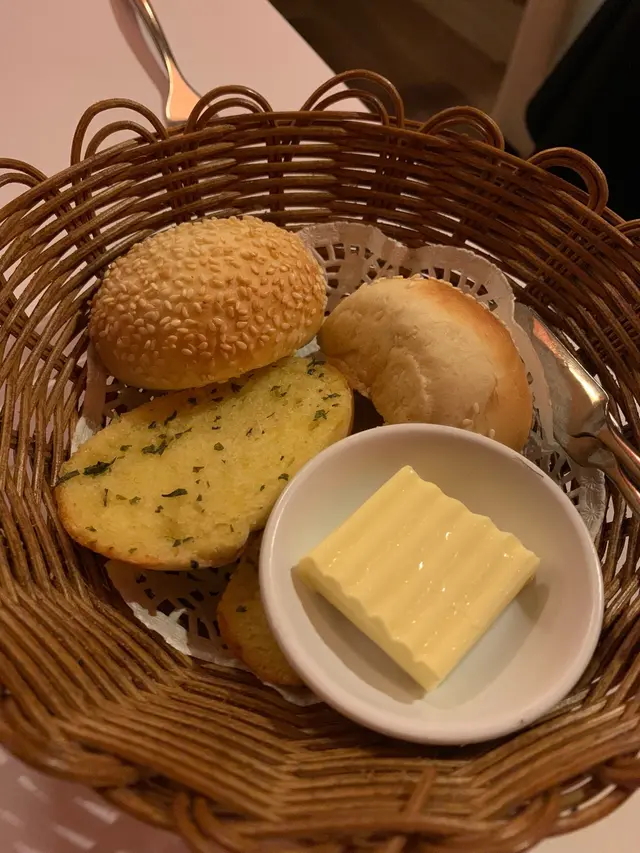 點好餐,就會有麵包送上。