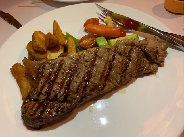 食完豬,再食牛扒感覺得有點‘漏’,牛扒比較有啃口,我個人比較喜歡黑毛豬的油香。