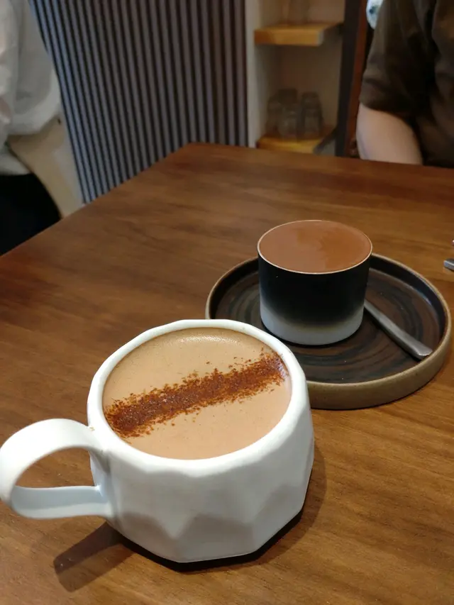 朋友叫左傳統意大利熱朱古力。呢杯朱古力口感較濃稠、味道濃郁👍🏻。不過如果一邊飲一邊食朱古力甜品,可能會有啲蓋過左甜品既味道。