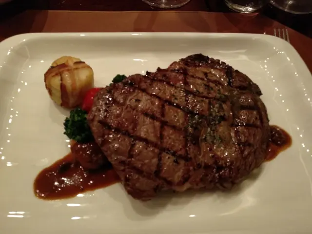 之後又等一輪終於上main dish既rib eye steak, 煮得岩岩好個texture超好食肉味又夠濃, 成功將塊扒既質素發揮曬出泥.