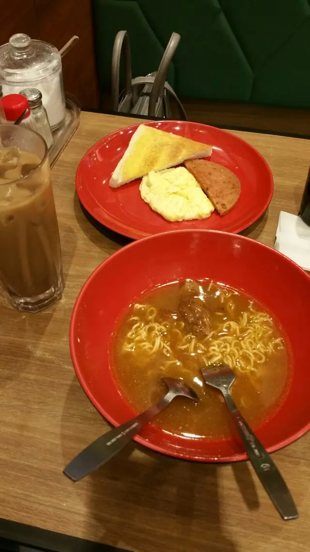 沙嗲牛肉麵裏頭有吃不完的牛肉 醃的程度適中,不會太淋不會太膩。咖啡也沖得相當香,是上班中的一點獎勵和empowerment !😆