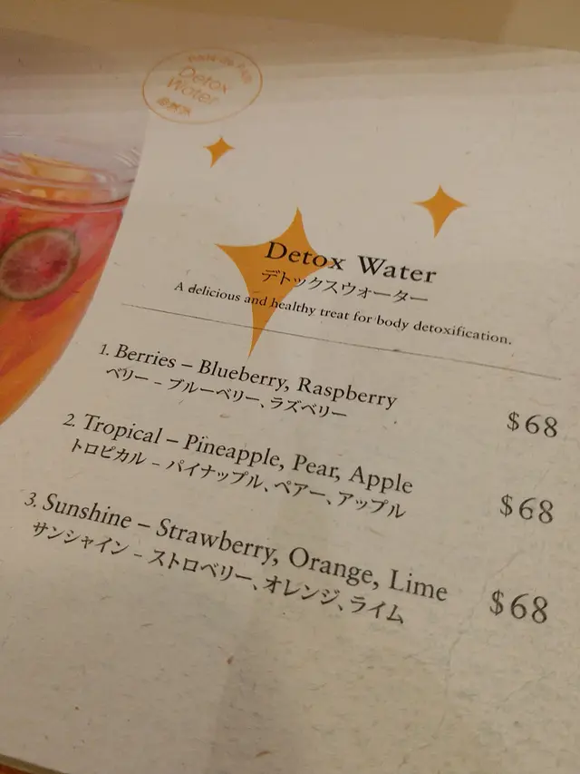 友人選了西茶, 口味是蘋果薄荷, 我聽目個名...就唔想飲了..., 搵暈成本餐牌, 都無我最喜歡既奶類飲品, 退而求其次, 點了其中一款Detox Water特飲.