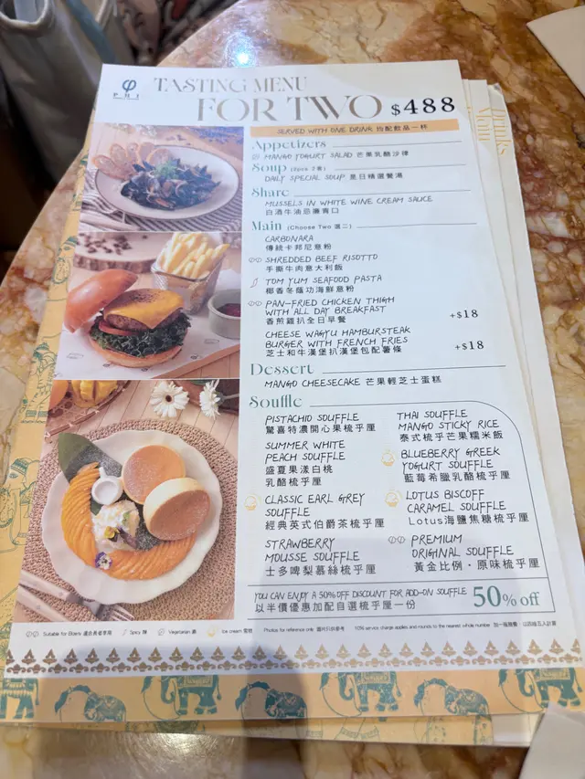 今次係芒果系列! SuetYingLau4363等级42025-08-26119 浏览 关注 超chill嘅西式x泰菜fusion cafe,環境舒服得滯,入面仲有一堆熊仔公仔做裝飾,拍照超靚📸!四周圍圍住滿滿嘅乾花同仿真花,氣氛好溫馨自然。.必試泰式梳乎芒果糯米飯,芒果甜到爆,糯米軟綿綿.椰香冬蔭功海鮮意粉酸辣得啱啱好,海鮮fresh爆😝😝.漢堡扒全日早餐豐富又有飽足感,重點係芝士漢堡扒仲配有蜜糖,甜鹹永動機😻.糯米芒芒椰奶沙冰清涼解暑,最特別嘅位佢仲配有椰汁糯米飯,口感好特別.香葉檸檬特飲清新醒胃.整餐食到甜酸鹹辣好平衡,好有驚喜!🫶🏻124以上食记乃用户个人意见 , 并不代表OpenRice之观点。赞好分享今次係芒果系列! PHI Coffee & Pancake (MegaBox) https://s.openrice.com/QrLT0AYvU00检举 张贴 评分5味道5环境5服务5卫生5抵食用餐日期2025-08-21用餐途径堂食人均消费$200 (晚餐)