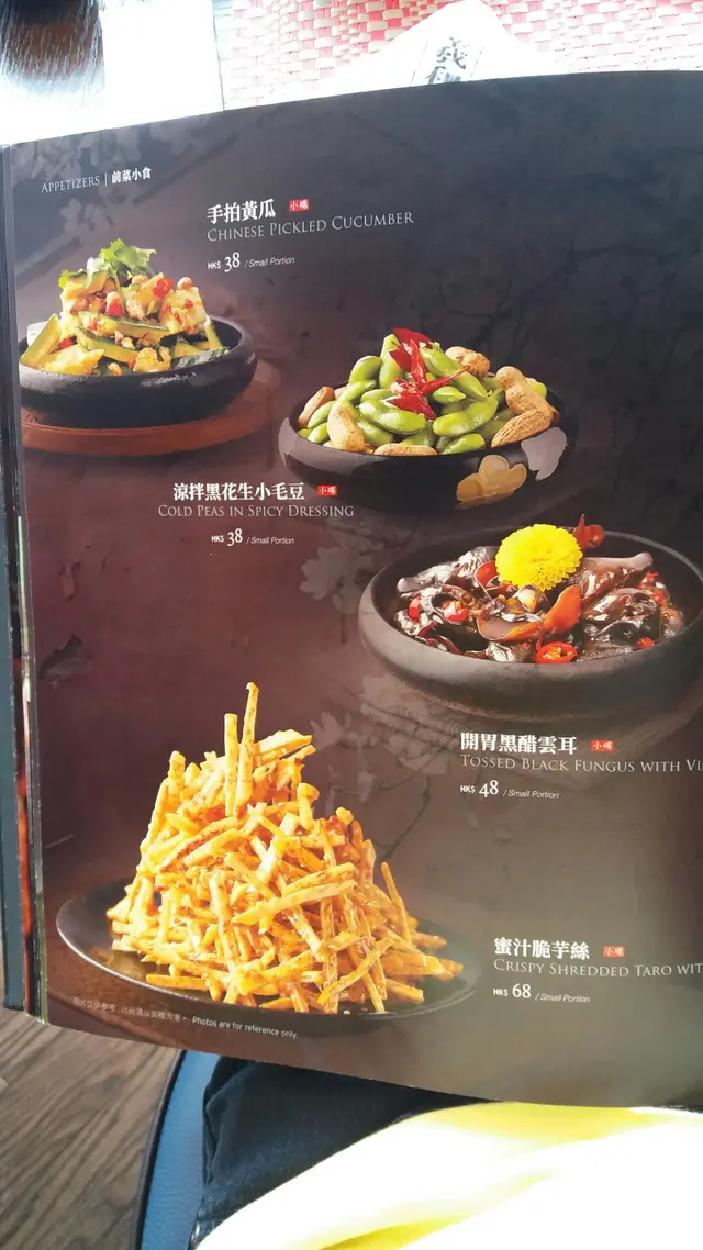 餐牌相又係靚,室内設計以中國典雅及簡潔風,配合北京菜風味;白牆,黑木條,想起吳冠中雙燕,但配新穎枱椅,又有不同看法。