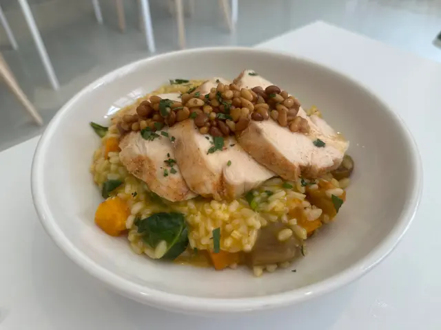 南瓜🎃🎃香甜軟綿融入意大利飯,味道特別香濃美味,意大利飯軟硬適中,帶點煙靭,雞胸肉🐔🐔嫩滑,配上甜美南瓜粒🎃🎃,鬆化栗子🌰🌰,及烤至香口松子,滋味無比😋😋