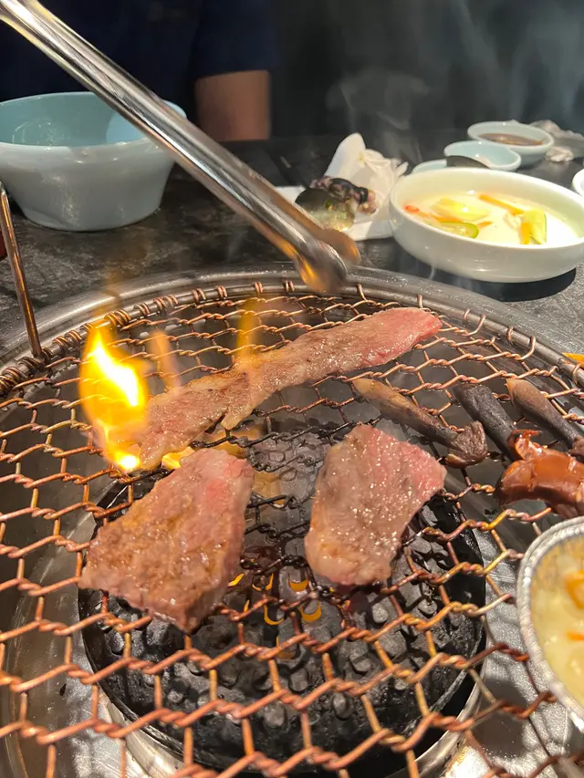 和牛燒肉盛係火焰下展現眼前,多種不同的和牛部位,搭配新鮮山野菇菌,肉質鮮美。炭火烤制香氣撲鼻而來,每一啖都充滿脂肪嘅香氣,食肉獸一定不能錯過🙌