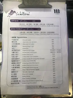 三張紙的餐牌,項目頗豐富,不乏雞之不同部位,據說大部份串燒皆是自家製造,與購入之成品優勝得多。