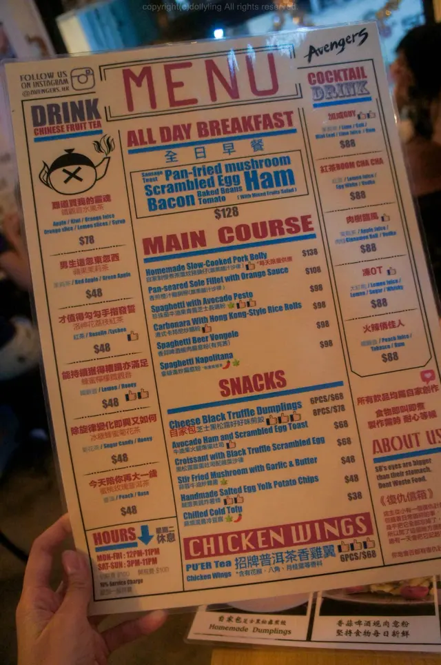 餐廳在一樓的右手邊,在樓梯的牆壁有大大個"復仇者"的霓虹燈