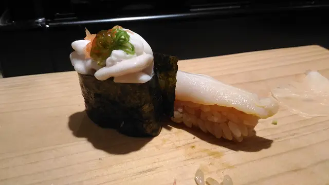 吃完八件壽司後,感覺仍有少許餘力,眼見吧枱內黑板上有白子和響螺壽司,便點了。