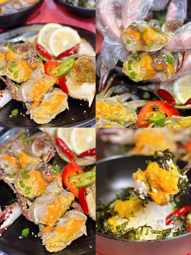 🦀醬油蟹調味腌制後都吸收左醬油味道,蟹膏入口即化,透明色的蟹肉肉質鮮甜,好新鮮完全無腥味,啖啖蟹膏配埋紫菜拌飯一齊食簡直絕配😝
