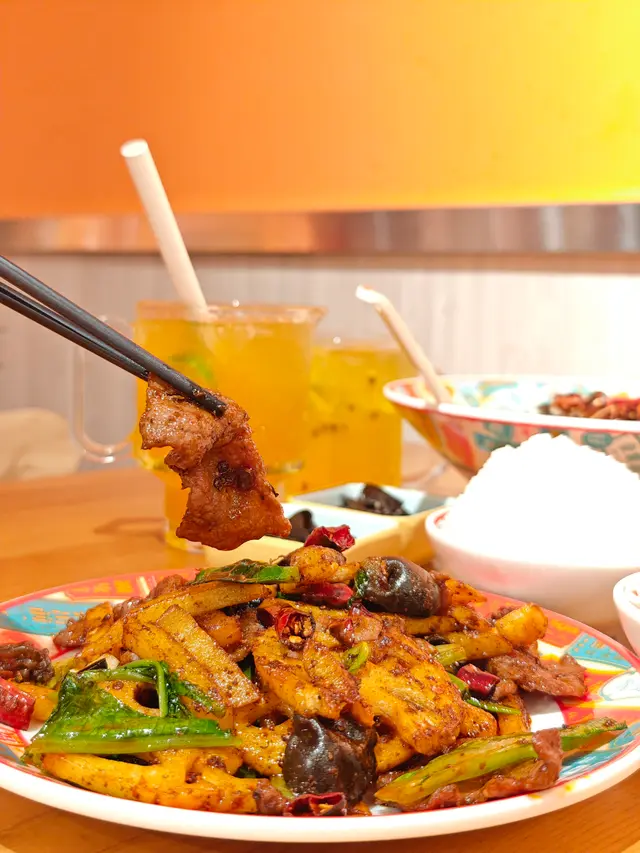 個味勁濃,爆香晒D辣椒好似特別辣,牛肉片都多塊,仲有D蓮藕同薯仔條,成個菜幾香口,不過有少少偏鹹