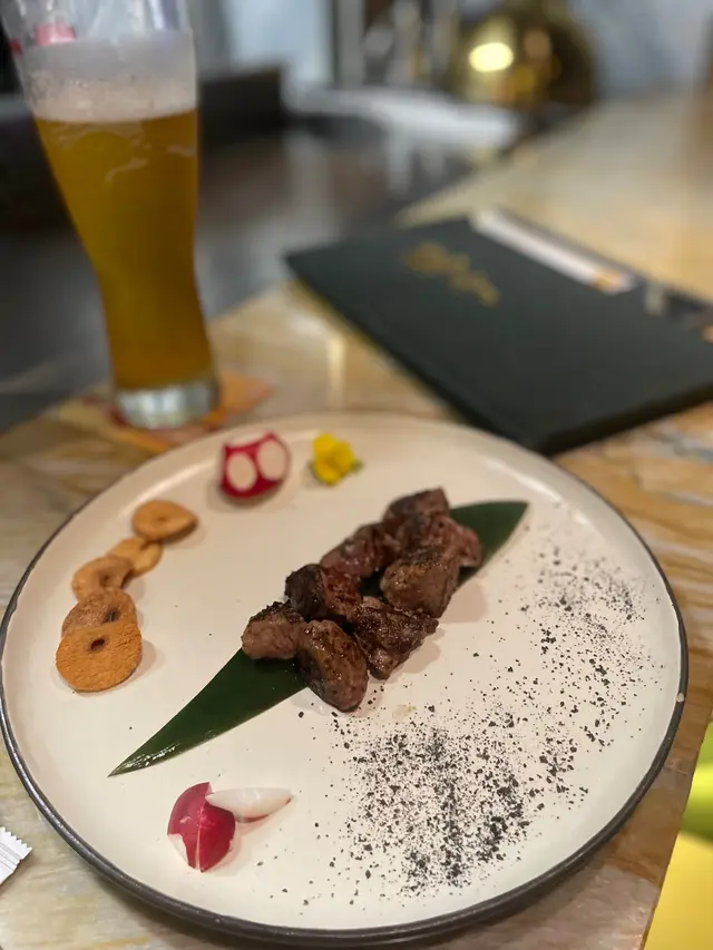 澳洲牛柳配上竹炭鹽同手磨蒜,牛味好出眾好好食