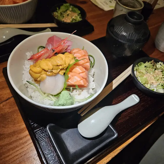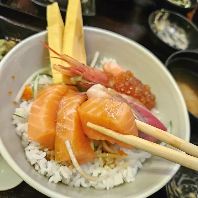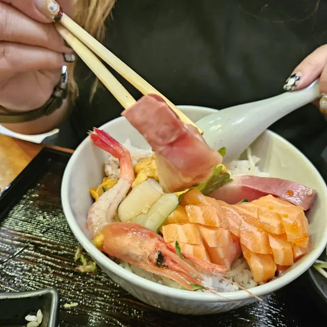 一上枱已經令人成個人醒晒!滿滿海鮮堆到成座山咁,三文魚腩肥美油香、入口即溶,海膽份量多,新鮮入口甘香,油甘魚厚切肉實,仲有隻大大隻帶頭甜蝦,肉質超鮮甜。底下醋飯粒粒分明、酸度剛好,混埋醬油一齊食,啖啖鮮味無得輸!