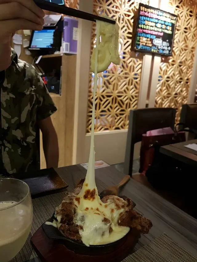 芝士佈滿整個碟,拉起芝士更可達一米之高,芝士煙靭濃郁,炸雞肉嫩口感佳,肉汁完全能保留,很正的炸雞