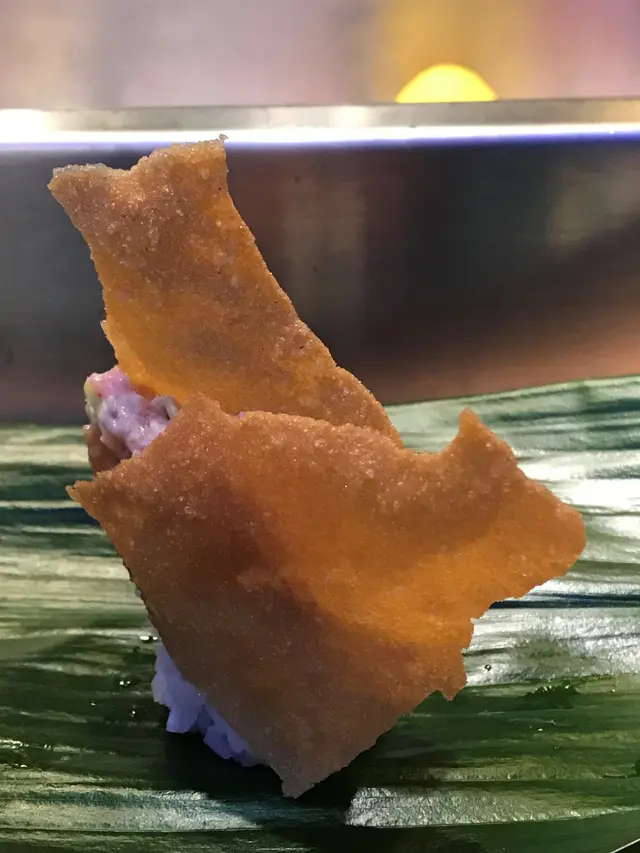 兩片薄脆夾著壽司一起吃原來很不錯 !