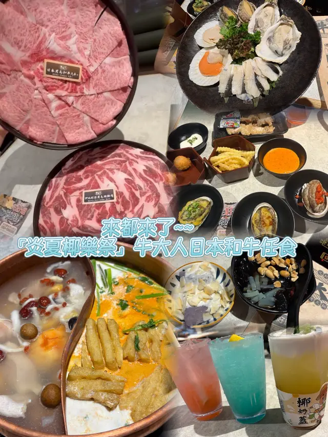 來都來了~~~食牛大人一定要食A4+日本黑毛和牛套餐,今次有新主題,「炎夏椰樂祭」限時活動,以椰子為主題,我哋點咗鴛鴦鍋,「喇沙椰爺仲夏鍋」同「木瓜椰皇嫩雞鍋」,湯底好泰風味呀,一邊降火一邊惹味(ˆ꜆ . ̫ . ).ᐟ.ᐟ