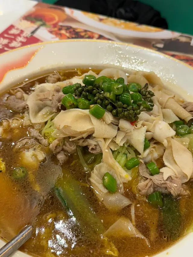 燒椒牛柏葉,加料版超豐富!本身個燒椒牛柏葉已經夠香,我哋貪心加咗肥牛、娃娃菜同青瓜,成個鍋變到超級豪華!牛柏葉爽脆冇渣,燒椒嘅焦香味好突出,加咗肥牛之後多咗層油脂香,啲娃娃菜索晒辣汁好入味。最驚喜係青瓜,生脆嘅口感同麻辣味出奇地夾!