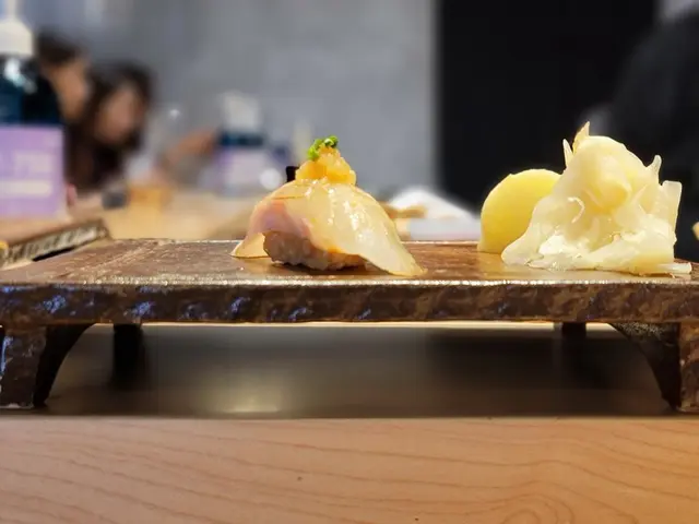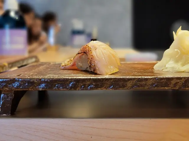 來自日本天草市的石垣鯛是屬白身魚的一種,將其配搭上醬油、酸汁蘿蔔、醋飯同食,口感彈滑柔韌,清脆甘甜。