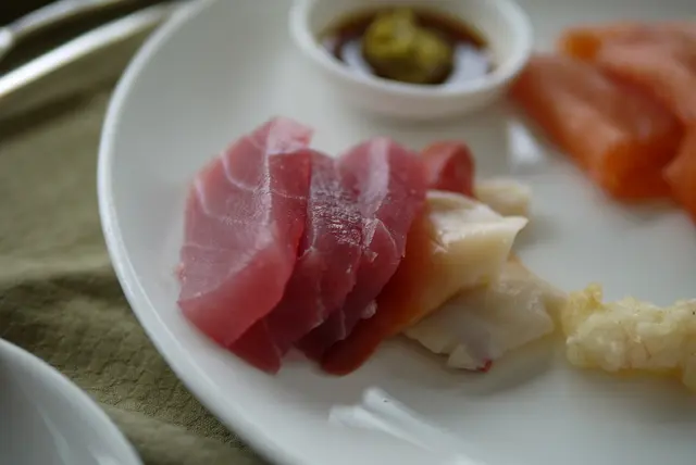 第二次拿吞拿魚刺身時,特意要求刺身師傅給點無筋的,便可拿到較好一點