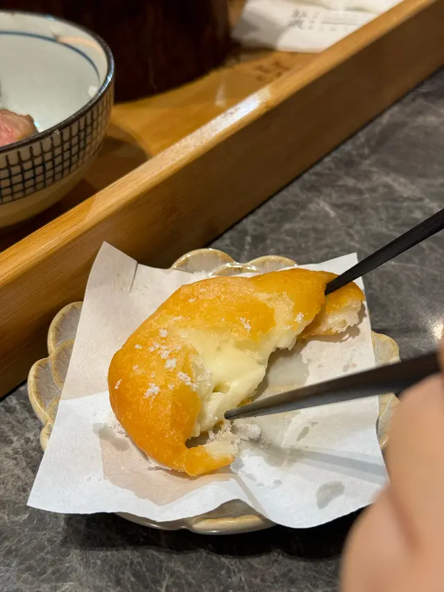 聽我話!一定要追加小食,兩款都好高質。雖然【芝士年糕】$12/件稍貴,但物有所值,外層炸皮好薄,芝士醬一咬就流心拉絲~