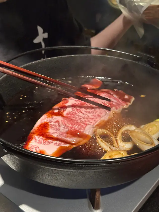 壽喜燒係由店員負責係你面前煮,等你幫棉花糖影完張靚相就開始啦,煮之前會問定你想牛肉熟嘅程度,十分貼心🥰唔好以為和牛一片好少,每塊都係完整一大片,食落好嫩滑,好滿足😌每人食左兩片之後,店員問我哋洗唔洗先暫停再繼續,等我地可以食下其他野先👍